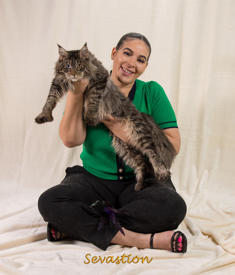 Queen Zoya is one of the most remarkable Maine Coons in the Fluffy Tufts family, with the fluffiest tail we have ever seen. Her striking coloring is stunning, but her loving personality and gentle nature are what truly stand out. Zoya is affectionate, playful, and endlessly sweet, with a heart as beautiful as her coat. She brings joy, warmth, and charm to every interaction, making her a treasured queen in our cattery and a perfect example of the Maine Coon’s gentle, loving spirit.